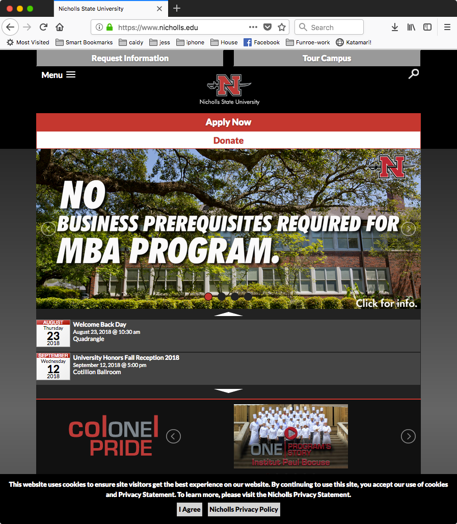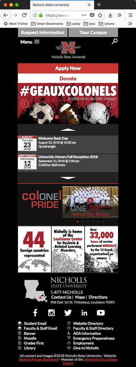 The Nicholls State University website has been a project of continuous iteration and enhancements. The 2015 redesign project was no exception with a WordPress theme based on the Underscore(_S) starter theme using Sass to organize and simplify complex CSS techniques and customized PHP to create useful tools to communicate with visitors. Some of the custom applications include the homepage calendar feed that actually uses the Google Calendar API which allowed non-technical web editors to help update events using the calendar system they were already using as part of their daily duties.